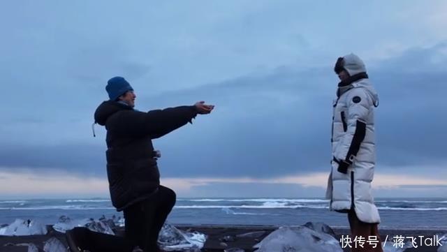 在冰岛的钻石海滩上,帅气的男生单膝跪地,向金沙高举戒指,许下一生一双人的承诺。 誓言回荡在深蓝的海与天之间,无比庄重!